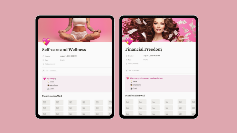 This template empowers you to effortlessly construct manifestation boards for every facet of your life, pen down your affirmations, keep track of your best ideas, and even document cherished memories. It's an all-in-one solution to maintain your thought process in alignment.